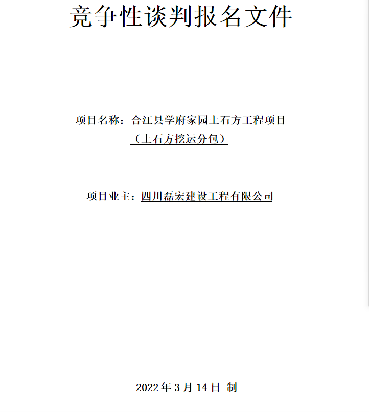 項(xiàng)目名稱:合江縣學(xué)府家園土石方工程項(xiàng)目(土石方挖運(yùn)分包)
