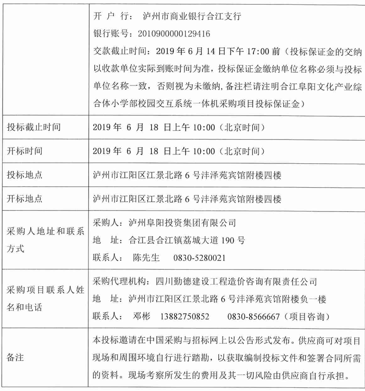 合江阜陽(yáng)文化產(chǎn)業(yè)綜合體小學(xué)部校園交互系統(tǒng)一體機(jī)采購(gòu)公告