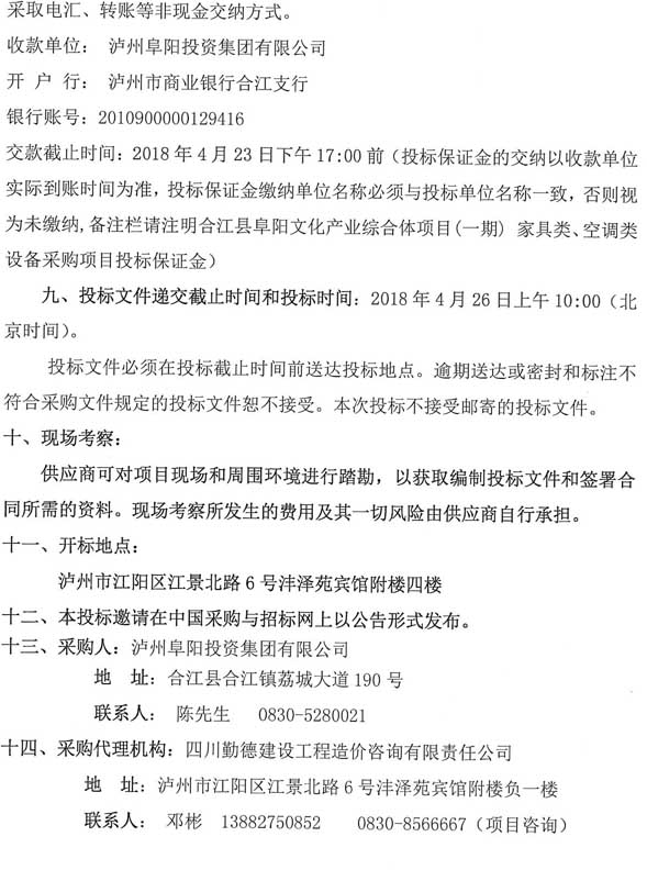 投標(biāo)邀請(qǐng):合江縣阜陽文化產(chǎn)業(yè)綜合體(一期)項(xiàng)目家具類、空調(diào)類設(shè)備采購
