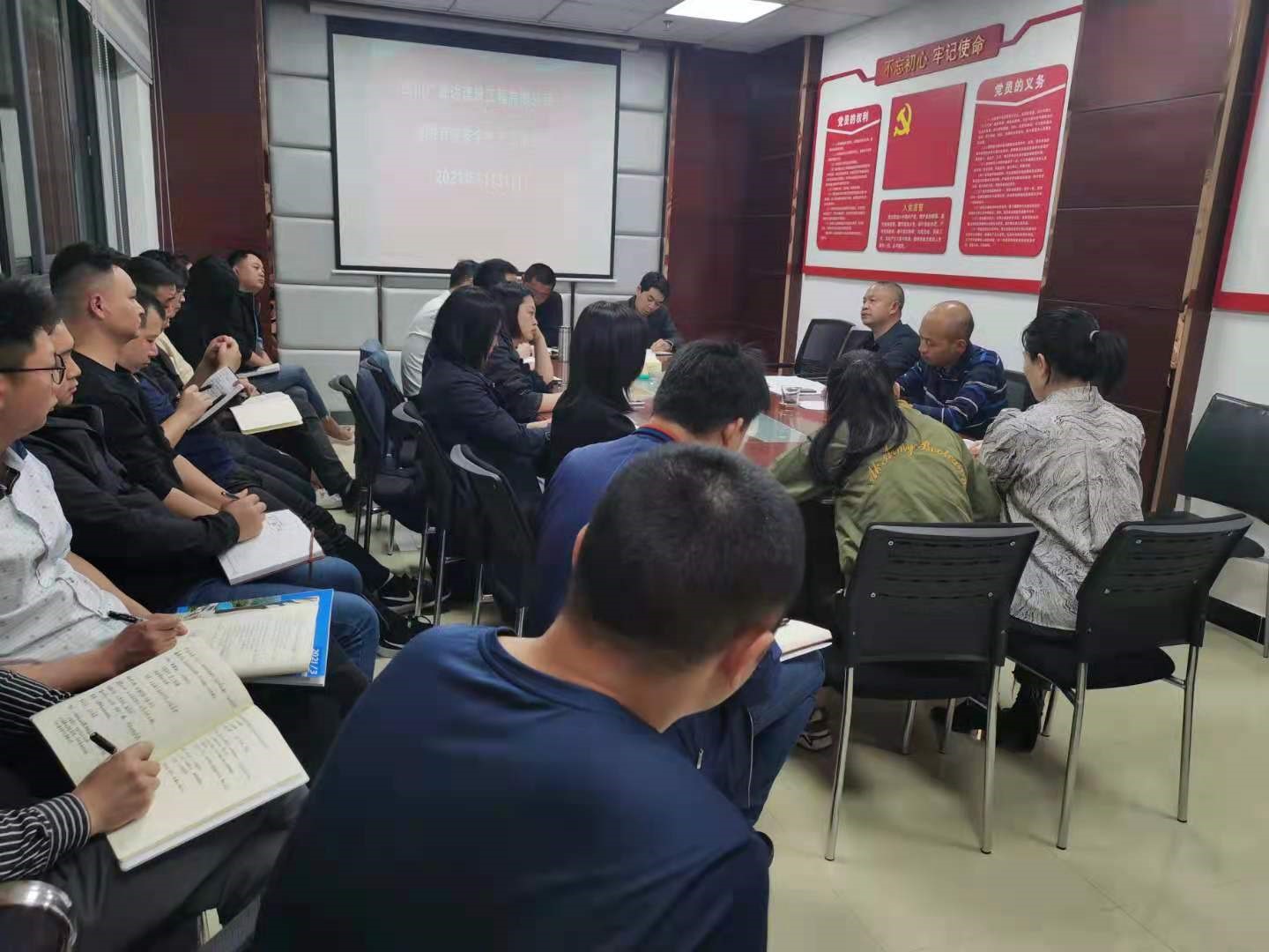 會(huì)上,董事長(zhǎng)張學(xué)彬?qū)Π踩a(chǎn)工作作出強(qiáng)調(diào):一是加強(qiáng)安全教育培訓(xùn);二是加強(qiáng)安全施工交底;三是加強(qiáng)安全生產(chǎn)檢查;四是嚴(yán)格處罰,獎(jiǎng)懲斗硬;五是推行全民管安全。