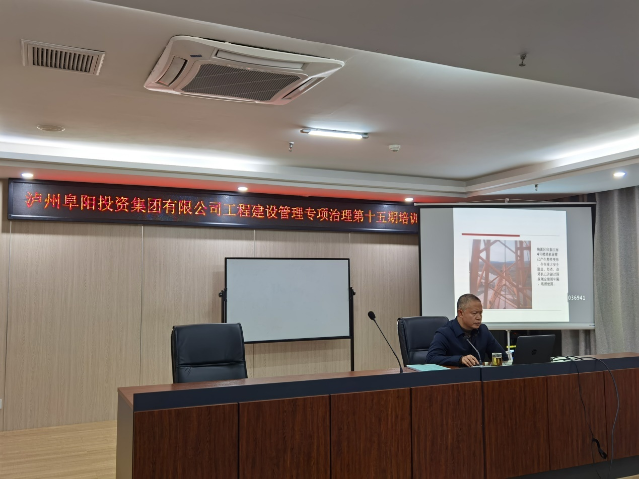 2021 年 10月28日,瀘州阜陽投資集團有限公司開展工程建設(shè)管理專項治理第十五期培訓,培訓會議由廣源達公司董事長張學彬主講,各級公司工程項目管理人員參加。