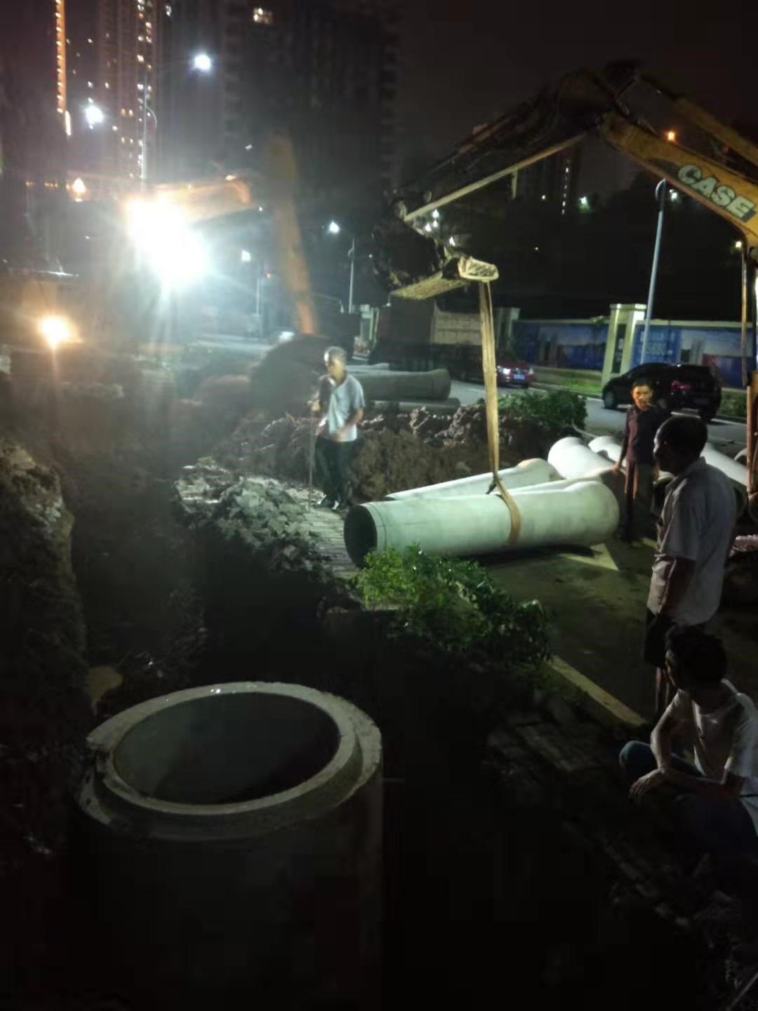 2019年7月15日晚,合江鎮(zhèn)菜壩社區(qū)軍民街因污水管道堵塞導致污水外溢。合江縣城市開發(fā)投資(集團)有限公司接到通知后,積極響應縣綜合執(zhí)法局指令,立即組織施工隊伍開展應急搶險施工,經(jīng)過連夜奮戰(zhàn),完成了排污管道的應急搶修工作,解決了該處化糞池經(jīng)常因上游水量過大導致污水外溢、污染環(huán)境的問題,切實保障了群眾生命財產(chǎn)安全。