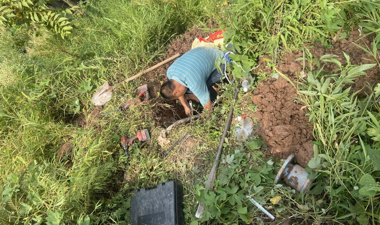 8 月 16 日雙橋水站協(xié)同大橋鎮(zhèn)派出所調(diào)查供水管網(wǎng)損壞現(xiàn)場(chǎng)、堅(jiān)決杜絕私拉亂接和人為損壞