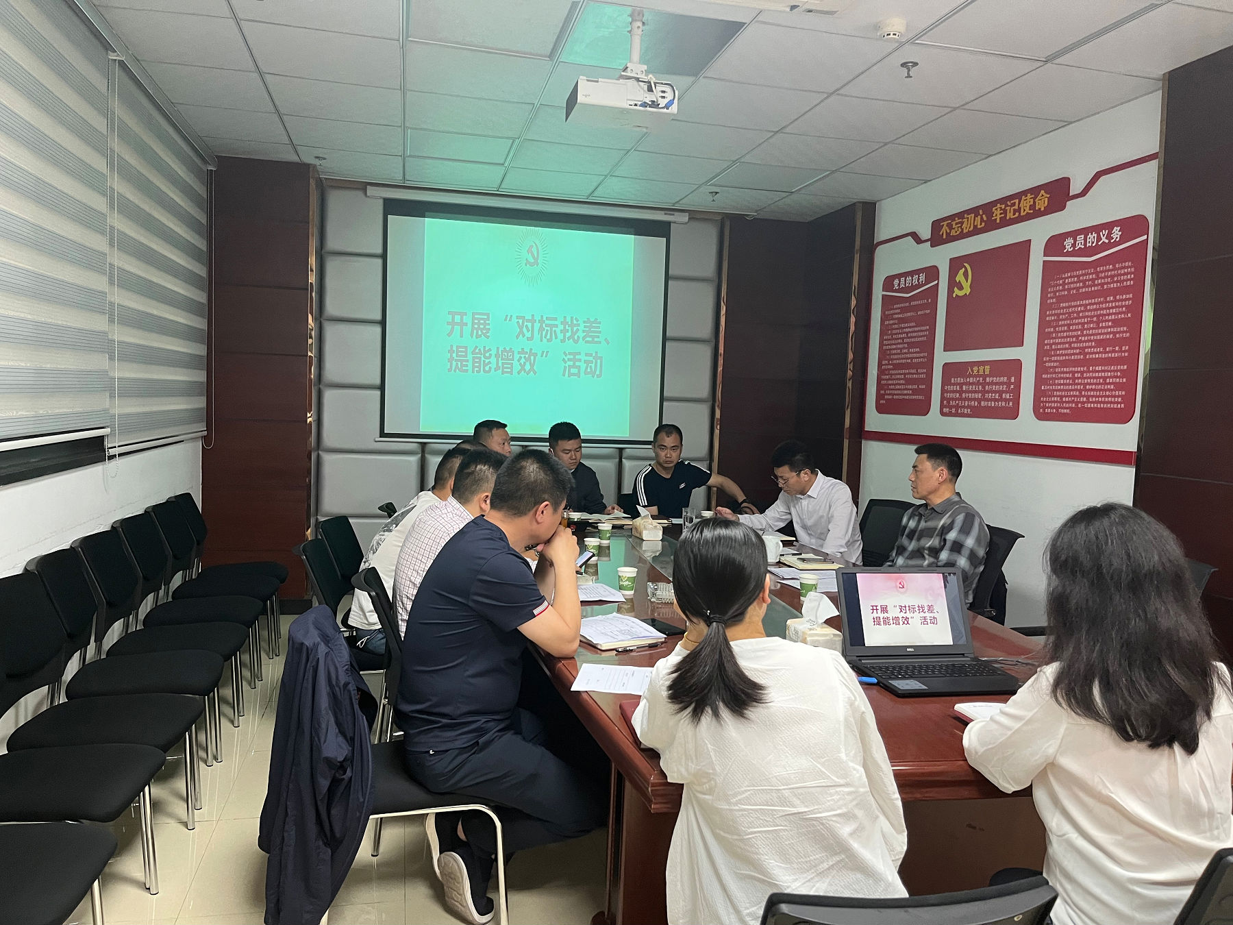 2022 年 4 月 22 日 , 按 阜 陽 集 團 黨 委 要 求 和 公 司 專 項 活 動方案部署, 城投公司充分準備、 精心組織各部門及子公司 開 展 “ 對 標 找 差 、 提 能 增 效 ” 專 題 研 討 會 , 深 入 開 展 查 擺 問 題 和 剖 析 原 因 , 在 全 公 司 掀 起 “ 對 標 找 差 、 提 能 增 效 ” 的 大 討 論 熱潮。